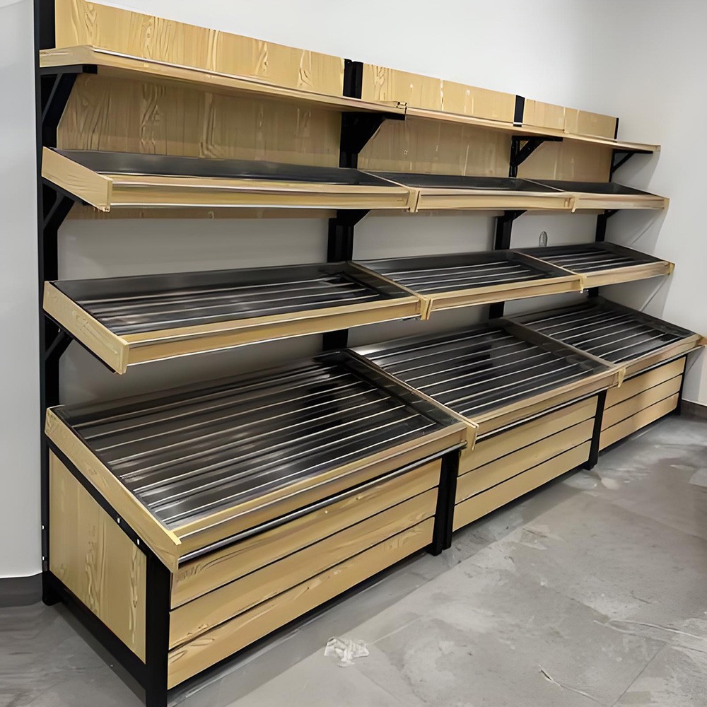 商业场所:在超市、便利店等商业场所,这款货架可用于摆放蔬菜、水果等生鲜食品,其稳固的结构与良好的展示效果能够吸引顾客的注意,提升商品销量。